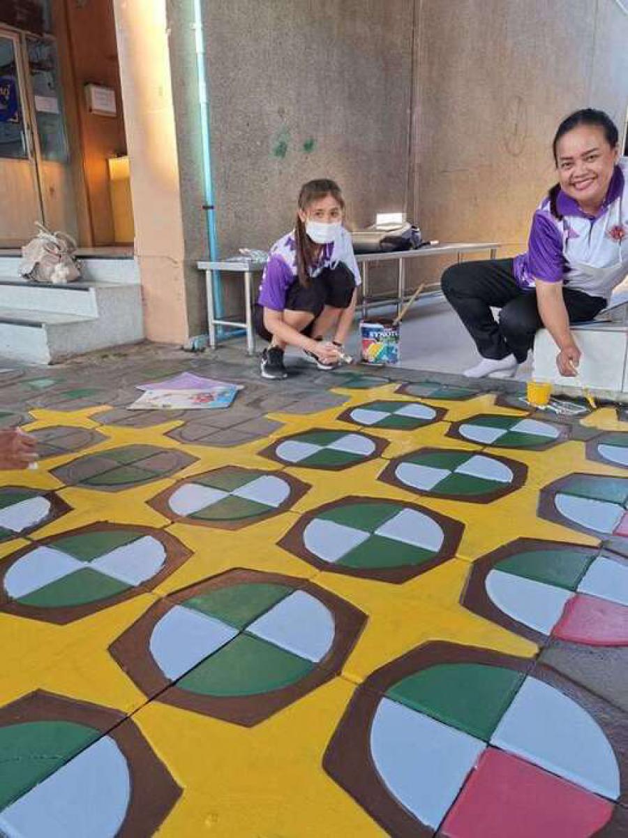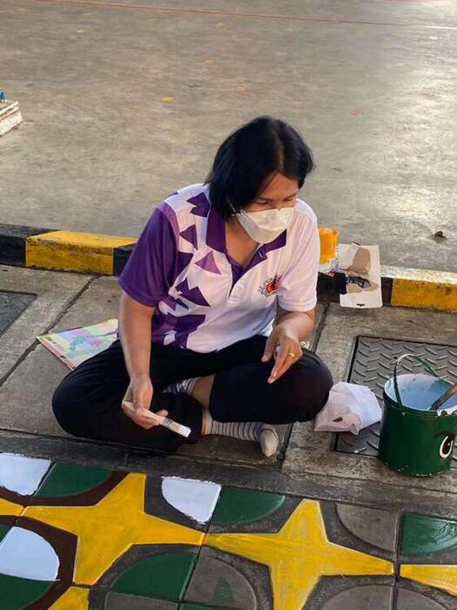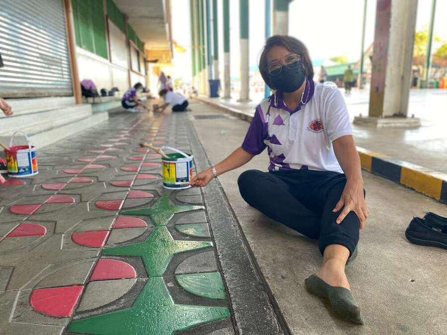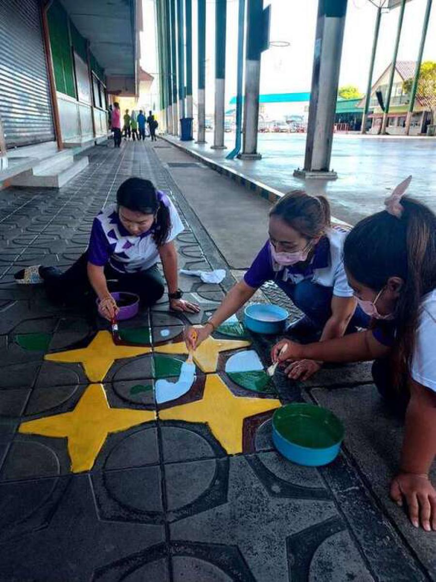 วันที่ 7 ธันวาคม 256 5 นำโดยนางสาวสุภาพร แสงสมาน ผู้อำนวยการสถานศึกษา พร้อมด้วยรองผู้ อำนวยการสถานศึกษา คณะครูและบุคลากรทุกคน ร่วมกันทาสีอิฐตัวหนอนบริเวณหน้าอาคารเรียนทุกอาคารให้สวยงาม สะอาด น่ามองส่งเสริมการเรียนรู้ เป็นโรงเรียนที่สวยสะอาดบรรยากาศวิชาการ ตามนโยบายผู้ว่าราชการกรุงเทพมหานคร S:0