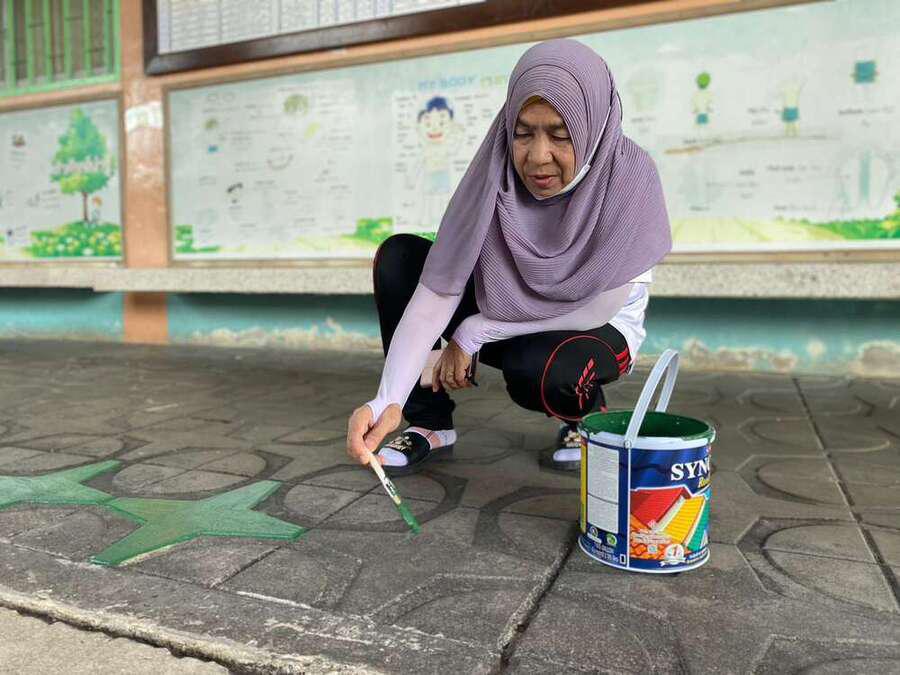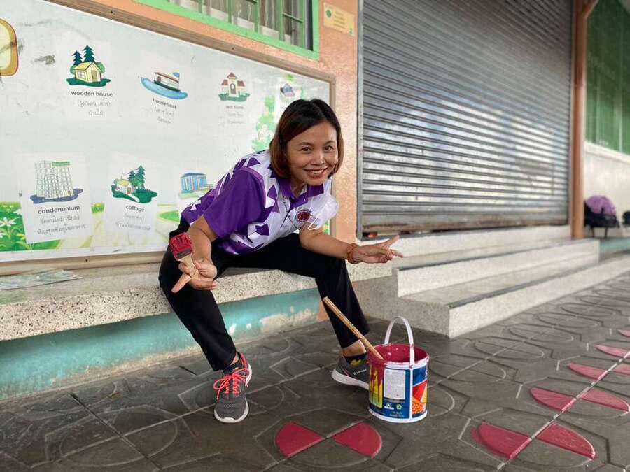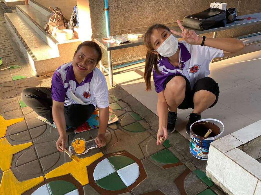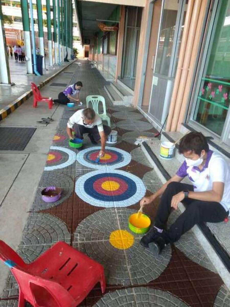 วันที่ 7 ธันวาคม 256 5 นำโดยนางสาวสุภาพร แสงสมาน ผู้อำนวยการสถานศึกษา พร้อมด้วยรองผู้ อำนวยการสถานศึกษา คณะครูและบุคลากรทุกคน ร่วมกันทาสีอิฐตัวหนอนบริเวณหน้าอาคารเรียนทุกอาคารให้สวยงาม สะอาด น่ามองส่งเสริมการเรียนรู้ เป็นโรงเรียนที่สวยสะอาดบรรยากาศวิชาการ ตามนโยบายผู้ว่าราชการกรุงเทพมหานคร S:0